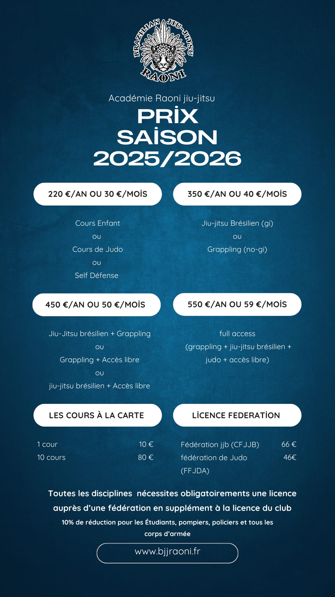 Retrouve tous nos tarifs ici.